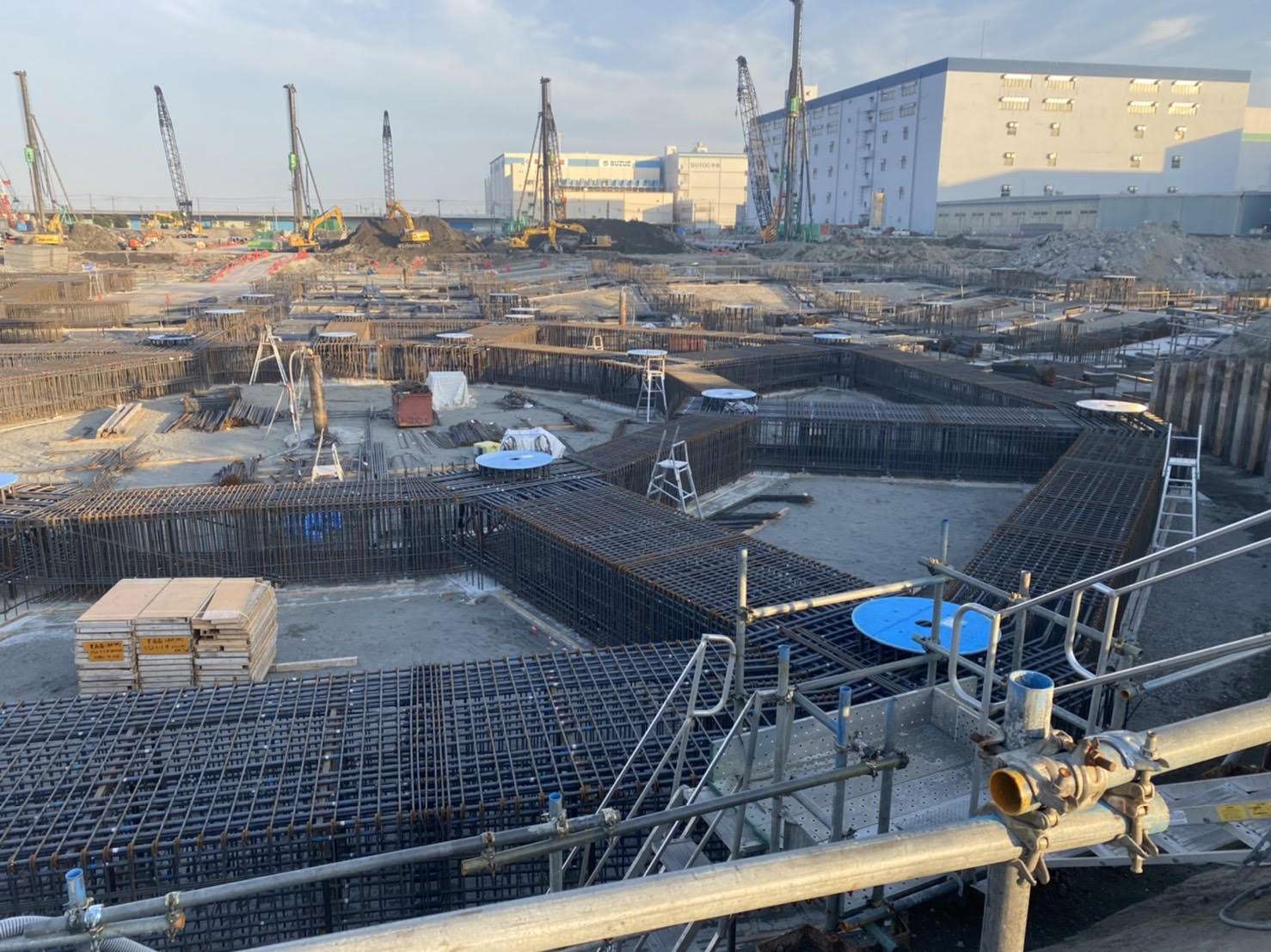 東扇島の現場 2021/06/24 お久しぶりです。 梅雨入りしましたねでも比較的晴れ間が多いですがジメジメした天候で 毎日過ごしております。 さて、現在の現場の東扇島の写真です。 これはランプ基礎配筋です!なかなか手強い配筋でした 現在はまわりの基礎配筋をしています。 以上!また、現場写真載せますね!!